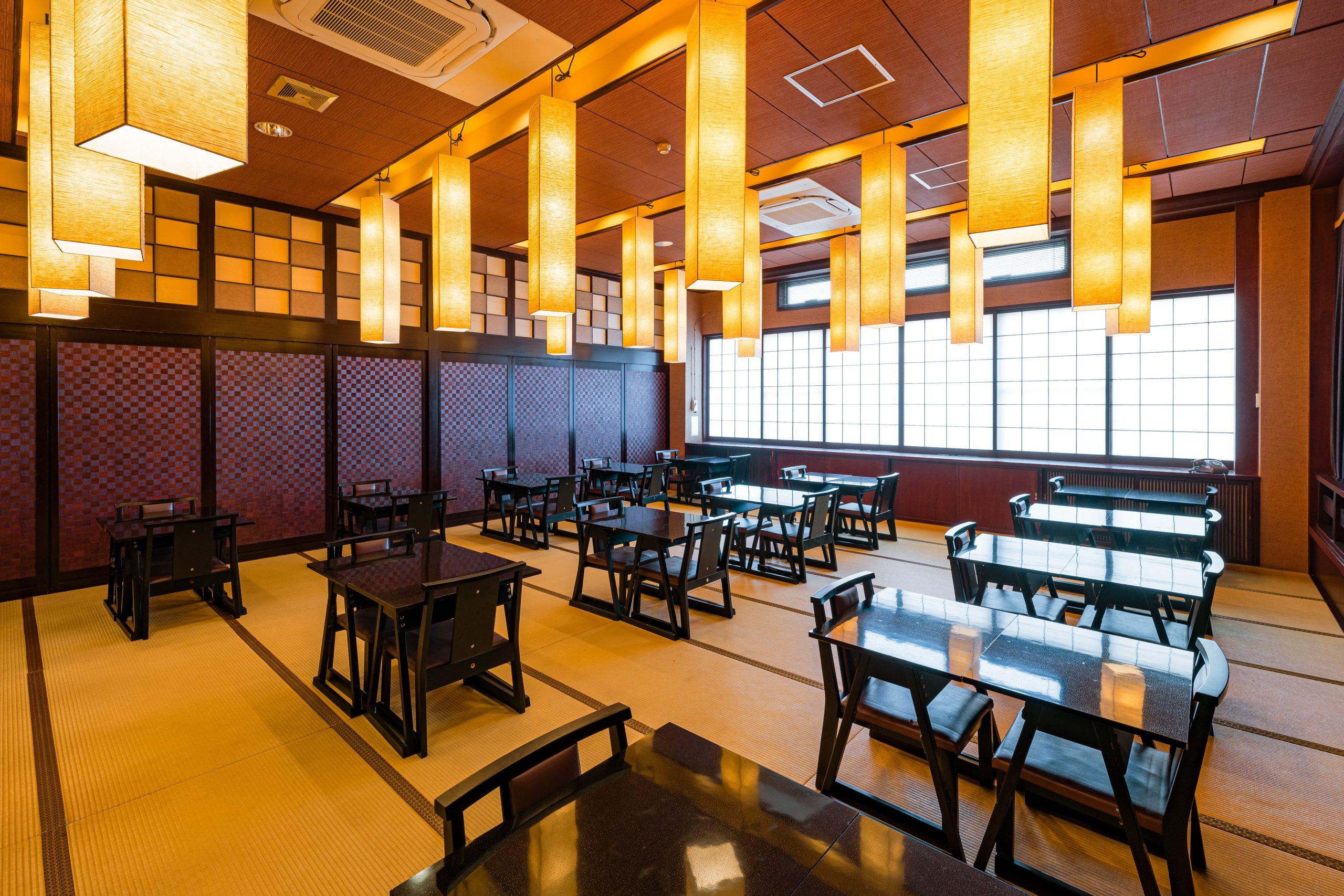 1Fに大広間がございます。間仕切りを使用して少人数から大人数までご宴席をお作りさせていただきます。1名様毎のテーブル・イス席でご用意致しますので、ご年配の方もご安心してお召し上がりいただけます。